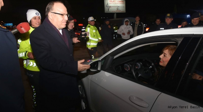 Yeni yıla saatler kala görev başında olan ve yılın ilk saatlerine de görev başında giren kamu görevlilerini Vali Mustafa Tutulmaz’da görevleri başında ziyaret ederek, yeni yıllarını kutladı. İlk olarak Afyonkarahisar Devlet Hastanesini ziyaret eden Vali Mustafa Tutulmaz, vatandaşların sağlık hizmetlerinden yararlanabilmesi için görev yapan sağlık personeli ile tedavi için bekleyen vatandaşlarla sohbet etti. Sağlık personeline çalışmalarında kolaylıklar dileyen Vali Tutulmaz, vatandaşlara da geçmiş olsun dileklerini ileterek, sağlıklı bir yıl temenni etti.Ardından 112 Acil Çağrı Merkezi ile Güvenlik ve Acil Durumlar Koordinasyon Merkezinde (GAMER) çalışmalarını sürdüren kamu görevlilerini ziyaret etti. Burada 112 Acil Çağrı Merkezi Müdür Vekili Dr. Gülsün Ateş Doğan’dan bilgiler alan Vali Tutulmaz, genel durum hakkında da detaylı bilgi aldı.Jandarma ve emniyet Yine Görev BaşındaYılbaşında jandarma ve Emniyet ekipleri de yine görev başındaydı. Vali Mustafa Tutulmaz Bölge Trafik Denetleme Şube Müdürlüğü önünde uygulamalarda bulunan Jandarma ve Emniyet ekiplerini ziyaret ederek yeni yıllarını kutladı. Ekiplerden yollardaki son durum hakkında bilgiler alan Vali Tutulmaz, yoldan geçen vatandaşların yeni yıllarını kutladı, iyi yolculuklar diledi. Vali Mustafa Tutulmaz’ın yılbaşı ziyaretlerinde İl Jandarma Komutanı J. Albay Hamza Çömez ve İl Emniyet Müdürü Gürsel Yıldız hazır bulundu.2 Bine Yakın Güvenlik Mensubu Görev AldıBurada basın mensuplarına açıklamalarda bulunan Vali Mustafa Tutulmaz “Afyonkarahisar merkezi ve 17 ilçesinde huzuru kaim kılabilmek adına var gücümüzle çalışıyoruz. Gerek alışveriş merkezlerinde olsun, gerek eğlence merkezlerinde olsun vatandaşlarımızın herhangi bir olumsuzlukla karşılaşmaması adına bütün güvenlik birimlerimiz özverili bir şekilde çalışıyorlar. Yeni yıl dolayısıyla il genelinde yaklaşık 2 bine yakın güvenlik gücü mensubumuz vatandaşlarımızın rahat eğlenebilmeleri hem de rahat ulaşım sağlayabilmeleri adına görevleri başındalar. Diğer taraftan gıda güvenliğinin sağlanması açısından sağlıklı bir gece geçirebilmek adına, sağlık hizmetlerinin yerine getirilmesi açısından ilgili kamu kurum ve kuruluşlarımız üzerine düşen görevlerini layıkıyla yerine getiriyorlar “dedi.Tüm Taraflar Olarak Aynı Hedefe Kilitlendik2019 yılını Afyonkarahisar olarak çok iyi haberlerle ve gelişmelerle geçirdik diyen Vali Mustafa Tutulmaz: “ İlimizin marka değer olabilmesi adına gastronomi alanında UNESCO tarafından yaratıcı şehirler ağına alınmamız, Dünya Motokros Şampiyonası’nın ilimizde yapılması, Tarihi Termal Kentler Birliği’ne üye olmamız ve buna benzer daha birçok alandaki çalışmalarımız ve gayretlerimiz ile Afyonkarahisar’ımızın marka değerini artırdık. İnşallah 2020'de de başarılı bir şekilde çalışmalarımıza devam ederek marka değerimizi daha yükseklere çıkartacağız. Bu konuda kamu kurum ve kuruluşları, siyasetçiler, STK’lar, meslek odaları ve tüm paydaşlar olarak 2019 yılını birlik beraberlik içerisinde ve uyumlu bir şekilde geçirdik. Bu güzel ortamın daha da iyi olmasını 2020 yılı içinde diliyoruz. Önümüzdeki süreçte de ilimizin tüm tarafları aynı hedefe odaklanmış durumda. Afyonkarahisar'ı daha iyiye nasıl ulaştırabiliriz, nasıl daha iyi tanıtabiliriz, daha gelişmiş bir duruma nasıl getirebiliriz buna odaklanmış durumdayız. 2019 yılı için hedeflerimizin üzerine çıktık. Bu durumdan da çok mutluyuz İnşallah 2020 yılında da yapacağımız çalışmalar ve faaliyetlerle vatandaşlarımızın yanında olmaya ve onlara en iyi şekilde hizmet etmeye devam edeceğiz” ifadelerini kullandı.Vali Mustafa Tutulmaz, açıklamalarının ardından şehirlerarası yolculuk yapan vatandaşlara çeşitli ikramlarda bulunarak, yeni yıllarını kutladı.