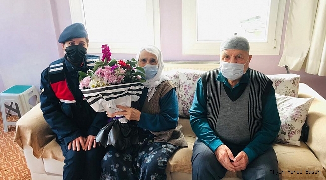Dinar ilçesinde jandarma ekipleri 'Aile Yılı' kapsamında 67 yıllık evli bir çifti ziyaret etti.