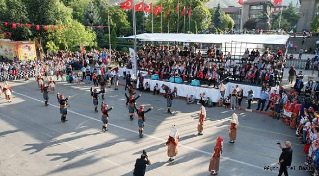Saygı duruşu ve İstiklal Marşı'nın okunmasıyla başlayan törende Cumhurbaşkanımız Recep Tayyip Erdoğan'ın Valimiz Gökmen Çiçek ve Belediye Başkanımız mehmet zeybek adına gönderdiği kutlama mesajı okundu. Ellerinde Türk Bayrakları ile meydanı dolduran Afyonkarahisarlılar kentin kurtuluş coşkusunu bir kez daha yaşadı. Belediye Başkanımız Mehmet Zeybek’in konuşmasının ardından gösterilere geçildi. Kutlamalara Afyonkarahisar Belediyesi tarafından düzenlenen Uluslararası 19. Zafer Halk Oyunları Festivaline katılmak üzere ilimize gelen ekipler renk kattı. Kutlamalar, Genelkurmay Başkanlığı Mehteran Takımı’nın büyüleyici gösterisi ile sona erdi. Mehteran gösterisi vatandaşlar tarafından büyük beğeni toplarken, uzun süre alkışlandı.