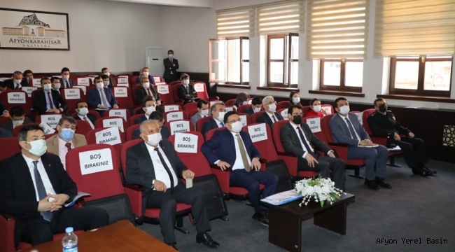 Vali Gökmen Çiçek başkanlığında yapılan toplantıya, Belediye Başkanı Mehmet Zeybek, Cumhuriyet Başsavcısı Mustafa Çelenk, Vali Yardımcısı Mehmet Keklik, Kaymakamlar, İl Müdürleri ve diğer ilgililer katıldı.