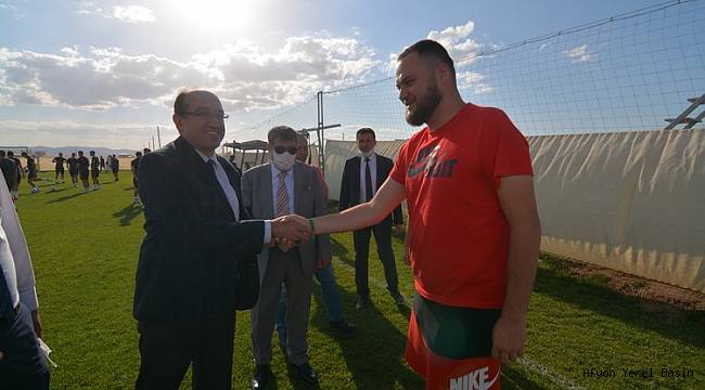 Akşam idmanını takip eden Başkan Mustafa Çöl ve Kaymakam Eflatun Can Tortop kendilerini ziyaret ederek, kamp, oyuncular mücadele ettikleri lig ve bölgemizle ilgili kendileriyle karşılıklı istişarelerde bulundular. Liglerinde büyük ve kaliteli takımlarla mücadele ettiklerini dile getiren Başkan Mustafa Çöl ve Kaymakam Eflatun Can Tortop, kendilerine şampiyonluk yolunda başarılar dilediler.