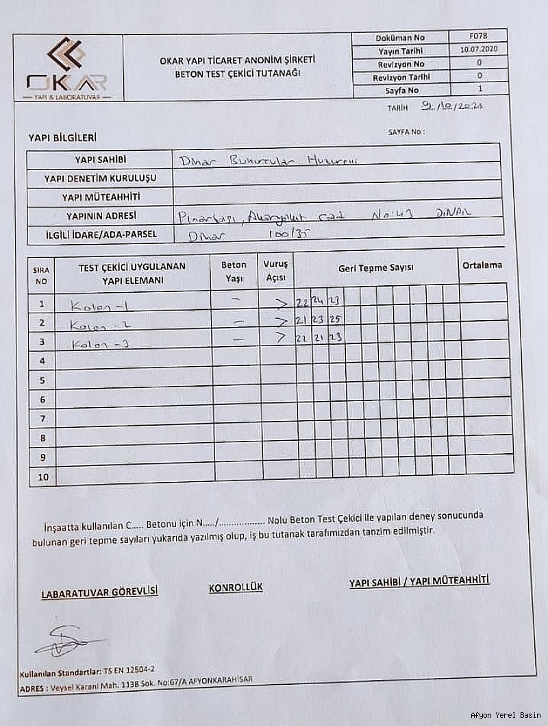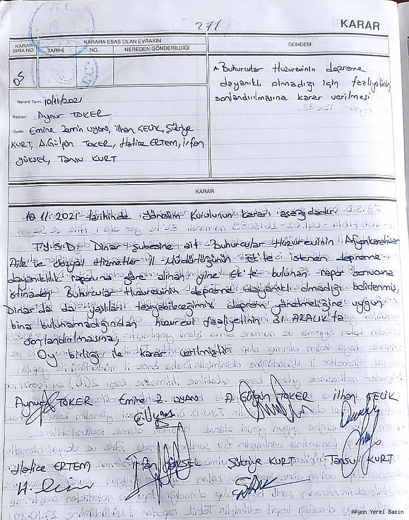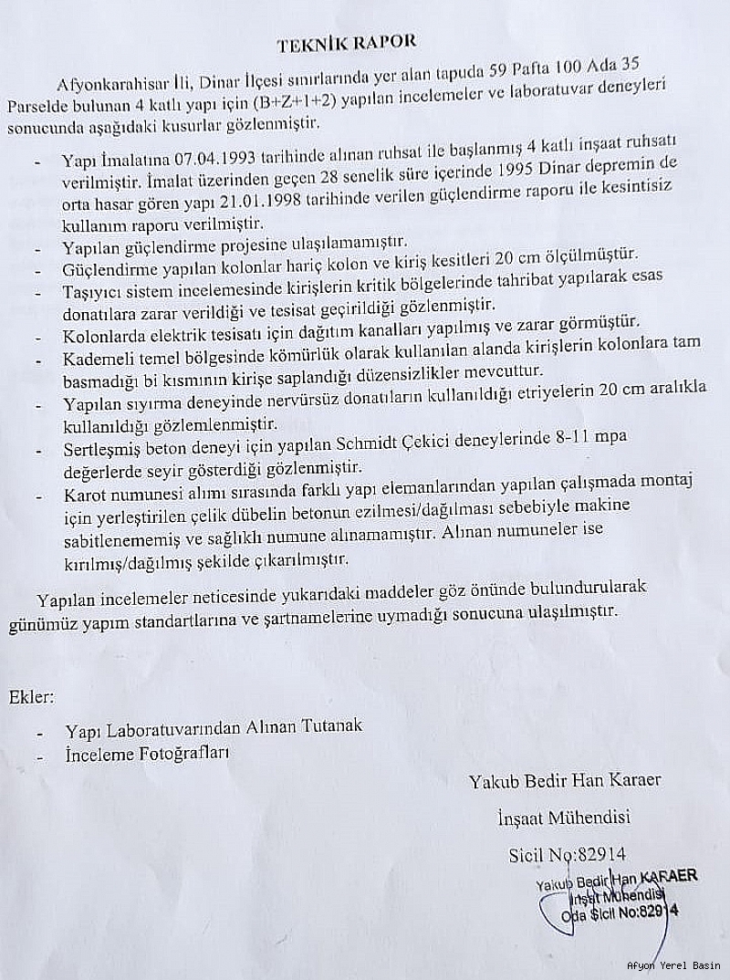 Türkiye Yardım Sevenler Derneği Dinar Şubemize ait 2004 yılından bu yana hizmet veren Buhurcular Huzurevinden Afyonkarahisar Aile ve Sosyal Hizmetler İl Müdürlüğünden talep edilen depreme dayanıklılık raporu temin edilmiştir