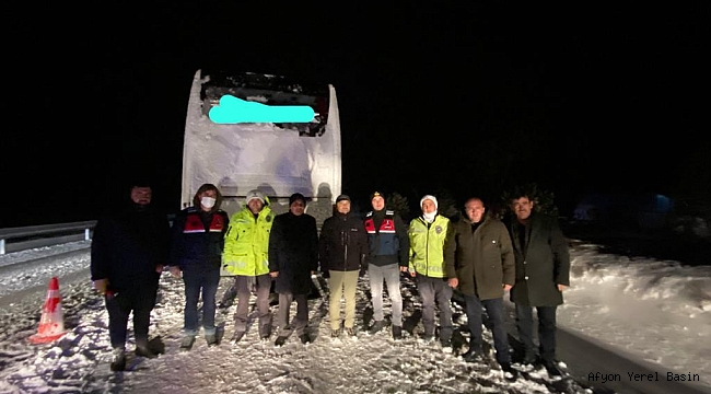 Emirdağ-Ankara yolu güzergahında kar yağışı ve tipi nedeniyle mahsur kalan yolcu otobüsü emirdağ kaymakamlığı ve emirdağ belediyesi ekiplerince kurtarıldı.