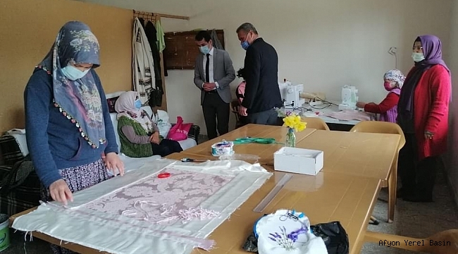Son olarak Dazkırı Halk Eğitim Merkezi Müdürlüğünce köyde açılan ve halen devam eden zikzak makine nakışı kursunu ziyaret ederek kursiyerler ile yaptıkları çalışmalar hakkında bilgi aldı.