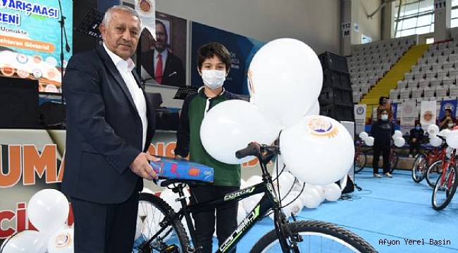 Şehrimizde orta öğretim düzeyindeki öğrencilere hem okuma hem de yazma kültürünü kazandırmak amacıyla Kitap Okuma Yarışmasında dereceye giren 120 öğrenciye bisikletleri Prof. Dr. Veysel Eroğlu Kapalı Spor Salonunda düzenlenen törenle teslim edildi.