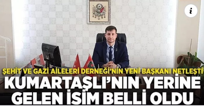 Türkiye Harp Malulü Şehit Dul ve Yetimleri Derneği Afyonkarahisar Şube Başkanlığı’ndan istifa eden İsmail Kumartaşlı’nın yerine Malul Gazi Emre Öztürk getirildi.