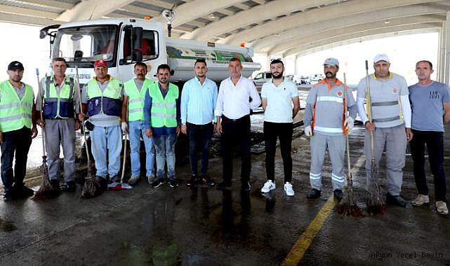 Afyonkarahisar Belediyesi Temizlik İşleri Müdürlüğüne bağlı ekipler, Kurban Bayramı öncesi kurban kesim yerlerinde dezenfekte çalışması yaptı. Temizlik İşleri Müdürlüğü, Kurban Bayramı nedeniyle hummalı şekilde çalışmalarını sürdürüyor. Temizlik konusunda gündüz ve gece vardiyasıyla çalışmalarını yürüten ekiplerimiz, belirlenen kurban kesim alanlarında sabunlu suyla yıkama yaptı, menfezleri temizledi. Temizlik İşleri Müdürlüğünden yapılan açıklamada, bayram boyunca sahada olacaklarını, kesim alanlarının da bayram boyunca düzenli olarak temizlenmeye devam edileceği bildirildi.