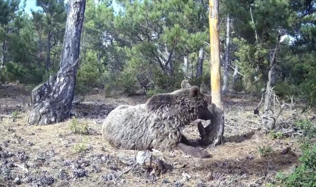 Kütahya'da, ormanlık alana yerleştirilen fotokapanlar bir boz ayının kaşınma keyfini kayıt altına aldı.Kütahya'da, yaban hayatı fotoğrafçısı Alperen Akdemir tarafından Kütahya il merkezi yakınlarındaki ormanlık alana yerleştirilen, fotoğraf ve video çekme özelliğine sahip fotokapanlar bir boz ayının hareketliliğini kaydetti.Yaban hayatı ve doğa fotoğrafçılığı yapan ve yaban hayatının ilginç anlarını kayıt altına alan Akdemir, bu kez fotokapanla bir boz ayıyı görüntüledi.Akdemir, AA muhabirine, yaban hayatını gözlemleme çalışmalarını Kütahya ve ilçeleri ile Türkiye'nin farklı bölgelerinde sürdürdüğünü söyledi.Orman varlığıyla da ön plana çıkan Kütahya'da birçok yaban hayvanının yaşadığını bildiğini ve bunları görüntülemek için manuel kameraları kullanmasının yanı sıra doğaya fotokapanlar da yerleştirdiğini aktaran Akdemir, "Kütahya merkeze yakın ormanlık alana bir süre önce fotokapan yerleştirmiştim. Görüntüleri incelediğimde bir boz ayının 'bölge işaretlemesi' olarak değerlendirilen hareketlerini ve bir ağaç gövdesinden yararlanarak yaptığı kaşınma hareketlerinin görüntüsünü izledim. Bu çok nadir görülebilecek görüntüyü kaydedebildiğim için mutlu oldum." dedi.Fotokapanlara, boz ayının ağaç gövdesine sürtünmesi ve yerde yuvarlanma görüntüsü yansıdı.