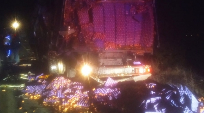 Edinilen bilgiye göre; Akşam saatlerinde Kütahya Karayolu 36. Kilometre Anıtkaya Köyüne yakın bir yerde Kamyonun karıştığı kazada 2 kişi yaralandığı bildirildi. Kaza sebebi ile Kamyon'da yüklü olan Portakal ve Mandalina'lar yola saçıldı.