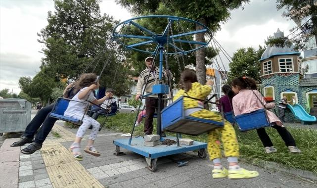 MUHARREM CİN - Kütahyalı Selim Cantürk, kol gücüyle çalışan seyyar salıncağına çocukları bindirerek kazandığı parayla ailesinin geçimini sağlıyor.Genç yaşta işsiz kaldıktan sonra seyyar salıncak satın alan 53 yaşındaki Cantürk, yıllardır Kütahya'nın mahallelerini dolaşıp çocuklara salıncak keyfi yaşatıyor.Cantürk, AA muhabirine, tekerleklerle hareket eden 7 oturaklı seyyar salıncağı 30 yıl önce satın aldığını söyledi.Salıncağa bindirdiği çocukların çok mutlu olduğunu belirten Cantürk, "Seyyar salıncakçılık benim için sadece meslek değil aynı zamanda bir hobi, bir sosyal faaliyet. Sokakları geziyorum. Bu olmasa çoğu yeri bilmezdim. O yüzden işimi, hobimi çok seviyorum." dedi.Kış ayları dışında yıl boyu kentteki tüm mahalleleri gezerek çocukları eğlendirdiğini ifade eden Cantürk, bu sayede kentin tüm mahallelerini, sokaklarını ezberlediğini aktardı.- "Sokakta oynayan çocuk fazla bulunmuyor artık"Eskiye göre sokaklarda daha az çocuğa rastladığını dile getiren Cantürk, şöyle devam etti:"Eskiden ilgi daha yoğundu. Son zamanlarda biraz azaldı ama yine de ilgi var. Önceden çocuklar bunun başında sahibi gelecek diye bekliyorlardı. Şimdi öyle bir şey olmuyor. Çocuklar eskiden sokaklarda oynuyordu. Şimdi sadece parka gelip gidiyorlar. Sokakta oynayan çocuk fazla bulunmuyor artık. O yüzden eskisine göre ilgi daha düşük. Yaz tatillerinde, bayramlarda ve düğün alanlarında iş yoğunluğum daha fazla oluyor. Çocuklar beni gördüğünde 'salıncakçı amca' diye bağırıyorlar."Cantürk, kentteki pek çok yetişkinin çocukluğunda yer edindiğini anlatarak, "Eskiden salıncağa bindirdiğim çocuklar şimdi anne baba oldular. Bana, 'Sen hiç değişmemişsin, halen geliyorsun, maşallah' diyorlar. Şimdi ise kendi çocuklarını bindiriyorlar. Bu çok güzel bir duygu. Sağlığım el verdiği sürece bu işi sürdüreceğim." diye konuştu.
