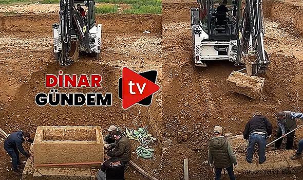Afyonkarahisar’ın Dinar ilçesi İncirli Mahallesi bina temeli kazısı sırasında kepçe operatörünün dikkatiyle bir Lahit ortaya çıkmıştı.