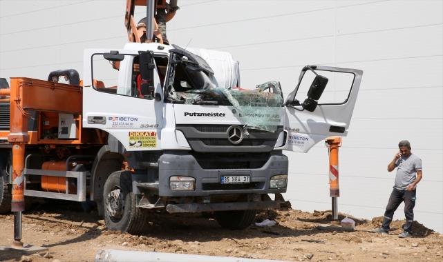 Manisa Organize Sanayi Bölgesi Hasan Türek Bulvarı'nda yapımı süren bir fabrika şantiyesinde çalışan fore kazık makinesi, aynı bölgede beton döken 35 HEA 37 plakalı beton kamyonunun üzerine devrildi.Araç içerisine sıkışan kamyon şoförü Tevfik Türker (42), itfaiye ekiplerince bulunduğu yerden çıkarıldı.İlk müdahalesi şantiyede yapılan Türker, ambulansla Manisa Celal Bayar Üniversitesi Hafsa Sultan Hastanesinde tedavi altına alındı.