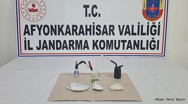 Afyonkarahisar İl Jandarma Komutanlığı görevlilerince Sandıklı İlçesi Dutağaç köyü mevkiinde 01.04.2022 tarihinde icra edilen önleyici devriye faaliyetinde yol kenarında 03 ... … plakalı otomobilin park halinde olduğu, aracın içerisinde M.U. ve S.Y. isimli şahısların bulunduğu ve koltuk üzerinde uyuşturucu madde içiminde kullanılan aparat görülmesi üzerine şahıslar üstünde ve araçta yapılan aramada;(10) gr metamfetamin olduğu değerlendirilen uyuşturucu madde, (4) adet uyuşturucu madde kullanma aparatı ele geçirilmiştir.Meydana gelen olay ile ilgili olarak şahıslar hakkında adli işleme başlanmıştır.;denildi.