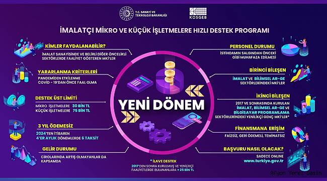 Covid-19 salgınından etkilenenimalatve bilimsel Ar-Ge sektörlerindeki mikro ve küçük işletmeler ile 2017 ve sonrasında kurulmuş imalat, bilgisayar programlama ve bilimsel Ar-Ge sektörlerindeki yenilikçi genç işletmelereKOSGEB tarafından “Mikro ve Küçük İşletmelere Hızlı Destek Programı” kapsamında sermaye desteği sağlanacaktır. Desteğin amacı, öncelikli sektörlerdeki mikro ve küçük işletmelerin (MKİ’ler) salgın şartlarına rağmen faaliyetlerini sürdürebilmelerini ve istihdamlarını salgın başlangıcındaki seviyede koruyabilmelerini sağlamaktır.