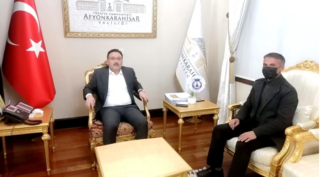 Afyonkarahisar Dinar İlçesi Yıprak Köyü Muhtarı Bayram Arslan, Valimiz Gökmen Çiçek'i makamında ziyaret etti.
