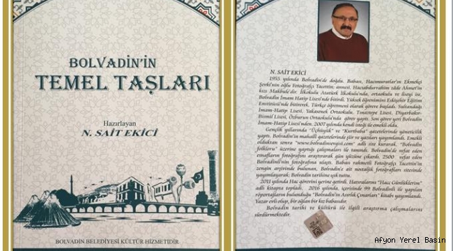 Bolvadin Belediyesi tarafından basımı yapılan; içerisinde 60 Bolvadinlinin hayat hikayelerinin yer aldığı; ayrıca rahmete kavuşmuş 1070 Bolvadinlinin fotoğraflarının ve nostaljik fotoğrafların bulunduğu “BOLVADİN’İN TEMEL TAŞLARI” adlı üçüncü kitabı çıkmıştır.