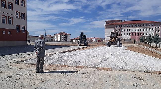 Dinar Belediyesi Bütün araçları ile Toki İlkokul Bahçesinin çevre düzenlemesi için seferber oldu.