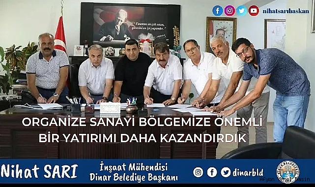 Dinar Belediye Başkanımız Nihat Sarı’nın da girişimleriyle Dinar Organize Sanayi Bölgemize Balık İşleme Paketleme Depolama Tesisi yatırımı geliyor. Yatırım için Organize Sanayi Bölgemizden 25.000 m2 büyüklüğündeki sanayi parselimiz yapılan anlaşma ile yatırımcılara tahsis edildi. OSB Yönetim Kurulu Başkanı İlçe Kaymakamımız Kemal Duru, OSB Yönetim Kurulu Başkan Vekili Dinar Belediye Başkanımız Nihat Sarı, Üyeler Dinar Ticaret Sanayi Odası Başkanı Veli Özcan, İl Genel Meclis Üyesi Ahmet Çetin, İş adamı İlker Çalışkan, Bölge Müdürü İbrahim Er ve şirket yetkililerinin katılımlarıyla sözleşme imzalanarak yatırımın ilk temelleri atıldı. Dış Ticaret ve Su Ürünleri sektöründe yıllardır faaliyet gösteren Ömer Sönmez (Össunar Balık), Muhammet Çıtırkı (Balıkçılık Teknolojisi Mühendisi) ve Kemal Kılıç (Agroline Danışmanlık) Dinar Organize Sanayi Bölgesi Su Ürünleri Tesisi yatırımı için güçlerini birleştirdi. “TESİSTE GÜNDE 25 TON BALIK İŞLENECEK”