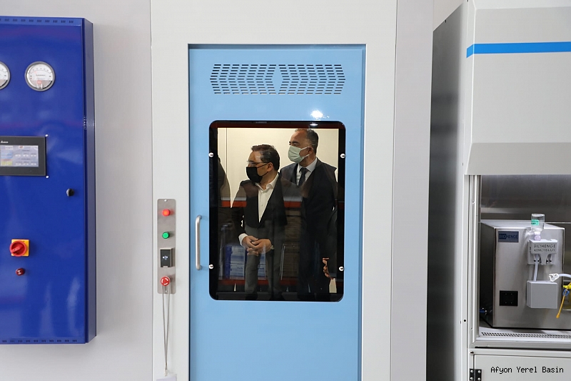 Afyonkarahisar Valisi Gökmen Çiçek, KOSGEB desteği, üniversite-sanayi iş birliğiyle geliştirilen yerli ve milli tasarım tpn yazılımı ve dolum cihazı üreten Biohenge firmasını ziyaret etti.