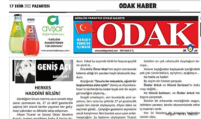 RABİA GÜZBEY YAZDI "HERKES HADDİNİ BİLSİN!"