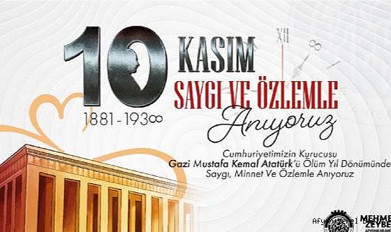 Belediye Başkanı Mehmet Zeybek, Cumhuriyetimizin kurucusu Gazi Mustafa Kemal Atatürk'ün vefatının 84. yıldönümü dolayısıyla bir mesaj yayınladı.