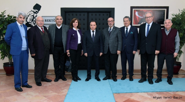Afyon Kocatepe Üniversitesi (AKÜ) Rektörü Prof. Dr. Mehmet Karakaş, İstanbul Afyonkarahisarlı Sanayici ve İş Adamları Derneği (AFSİAD) yetkililerini makamında kabul etti.Gerçekleştirilen ziyarete İstanbul AFSİAD Yönetim Kurulu Başkanı Metin Balıbey ile birlikte Kurucu Başkanlar Mustafa Mühsürler ve Kamil Ay, Genel Sekreter Münevver Aksoy, Yönetim Kurulu Üyeleri Yusuf Arpacıoğlu, Musa Bursalı ve Sadık Tortop katıldı.Karşılıklı görüş alışverişinde bulunulan nezaket ziyaretinde Rektör Karakaş, nazik ziyaretleri nedeniyle misafirlerine teşekkür etti.