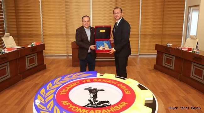Afyonkarahisar Sağlık Bilimleri Üniversitesi Rektörü Prof. Dr. Nurullah Okumuş, Afyonkarahisar Ticaret ve Sanayi Odası Yönetim Kurulu Başkanı Hüsnü Serteser’i ziyaret etti.