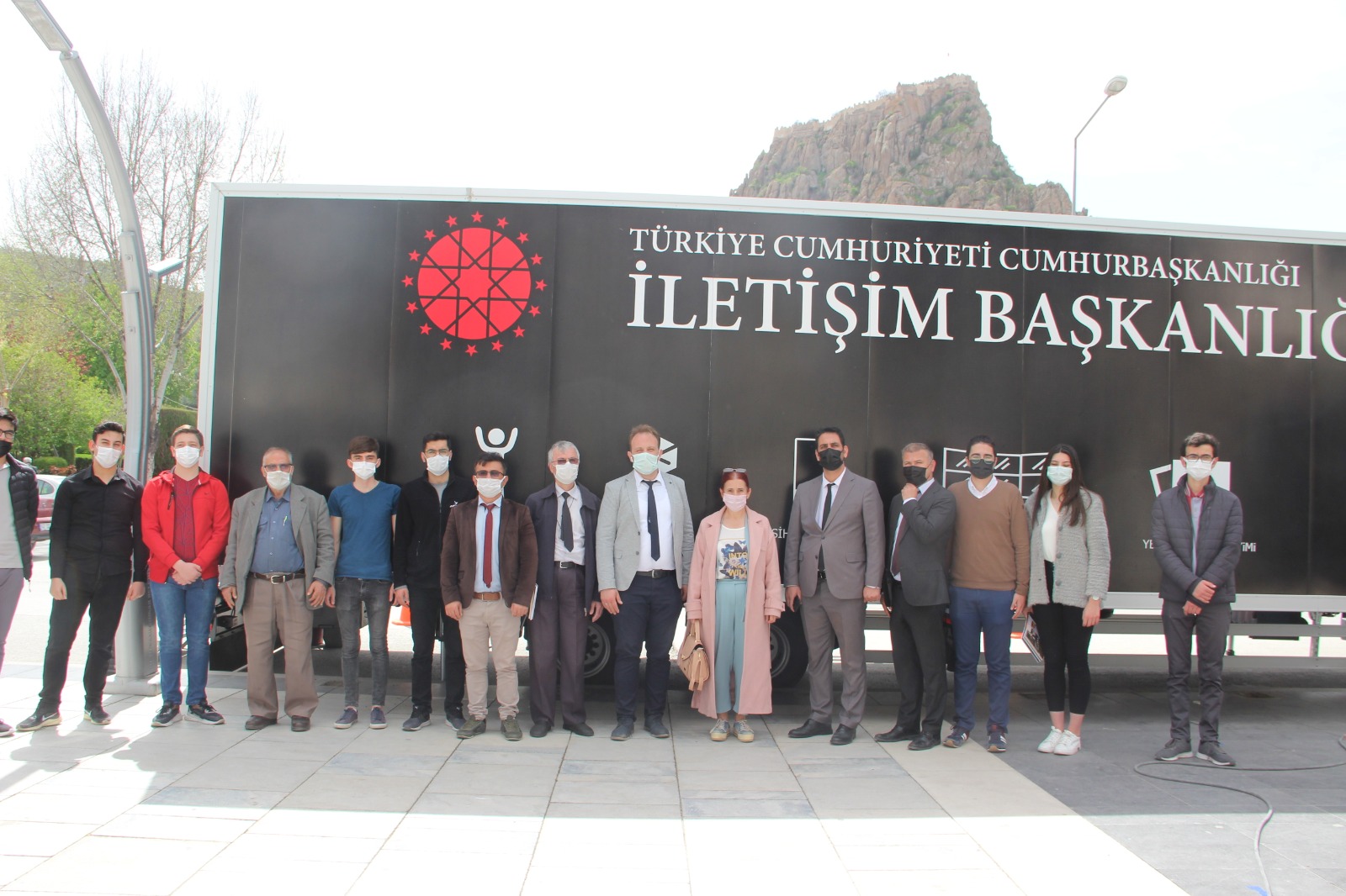 Cumhurbaşkanlığı İletişim Başkanlığı Akarahisar bölge Müdürü Şerife Münire Burcu, dijital tır hakkında bilgi vererek, “Bugün milli, tarihi, kültürel zenginlikleriyle donatılmış, yeni teknolojiyle birlikte birleştirerek sunumlar yapan dijital tırımızı bugün Afyonkarahisar Rahmiye Sare Palalı Mesleki ve Teknik Anadolu Lisesi öğrencilerini ağırladık. Kendileri bugün teknolojinin hangi boyutlara geldiğini bugün dijital tırımızda inceleyecekler görecekler. Okulumuzun TEKNOFES Grubu burada. TEKNOFEST’te de oraya gitmeye hak kazanmış bir gurup. Onları burada teknolojiyle buluşturuyoruz. Güzel deneyimler yaşayacaklarına inanıyoruz” diye konuştu.