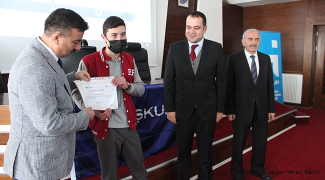 İş-Kur Afyonkarahisar İl Müdürü Ahmet Karakaya ise meslek liselerinin önemli olduğunu belirterek, burada mezun olan öğrencilerin mühendis olacağının altını çizdi. Karakaya, “Doksanlı yallarda ben sizin gibi lise öğrencisiydim. Bugün 45 yaşındayım. Hep 18 yaşına gelsem diye düşünürdüm. Zaman çabuk geçiyor. Bu sebeple zamanımızı mutlaka iyi değerlendirmemiz gerekiyor. Ortalama hepiniz 11. sınıf öğrencisisiniz. Önünüzde 1 yıl var. Sizleri önemsediğimiz için buradayız. Sizin başarılı olmanız, daha iyi yerlere gelmeniz, bunun için buradayız. 15 yaşını bitirip, 16 yaşından gün aldığınız zaman İş-Kur’a kaydınızı olabiliyorsunuz. Meslek seçme aşamasında yine sizlere yardımcı olabiliriz. Online başvurabileceğiniz gibi, yüz yüze görüşerek de size bu konuda eğitim verebiliyoruz. Bu yıl yaklaşık üniversite öğrencilerimiz dahil olmak üzere 600 kişiyi bu eğitimden faydalandırdık. Bu eğitimlerimiz ücretsiz, herhangi bir ücret almıyoruz kurum olarak. Eğitimin sonunda size katılım sertifikası veriyoruz. Amacımız bir farkındalık oluşturmak. Meslek Lisesinde okuyorsunuz. Türkiye’de şöyle bir algı var; çalışkan olan en iyi öğrenciler fen lisesine gider, Anadolu lisesine gider, liseye gider, çalışmayan, okumak istemeyen öğrencilerde sanat okuluna gider gibi bir şey vardı 90’lı yıllarda. Meslek önemli, lisede siz bu işi öğreneceksiniz ki daha sonra bir işin mühendisliğini yapabilin. Bir işin çıraklığını yapmadan ustalığını yapmak biraz zor bir şey. Bunu da biz sahada görüyoruz, özellikle elektrik mühendislerinde. İleride birer mesleğiniz olacak. Eğer bu meslekte başarılı olmak istiyorsanız, sürekli çalışmanız gerekiyor, kendinizi geliştirmeniz gerekiyor” diye konuştu.