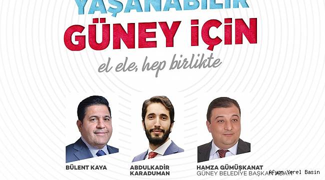 Saadet Partisi Konya Milletvekili Abdülkadir Karaduman ve saadet partisi Genel Başkan Yardımcısı Bülent Kaya, Güney Belediye Başkan Adayı Hamza Gümüşkanat’ın çalışmalarına destek vermek için 5 Haziran Cumartesi günü Afyonkarahisar’a geliyor.