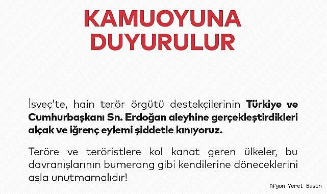 İsveç'te Cumhurbaşkanı Recep Tayyip Erdoğan aleyhine gerçekleştirilen olaya Saadet Partisi'nden kınama geldi. Kamuoyu mesajında Bu çirkin eylemin şiddetle kınadıkları belirtildi.İsveç Stockholm'de tarihi belediye binası önünde toplanan bir grup terör örgütü PKK/YPG destekçisi, Cumhurbaşkanı Recep Tayyip Erdoğan'a benzetilen bir makete yer verdi.Terör örgütü PKK/YPG ile bağlantılı sosyal medya hesaplarında paylaşılan videoda, Türkçe altyazıyla Türkiye'yi ve Cumhurbaşkanı Erdoğan'ı hedef alan tehditler savurduğu görüldü.İsveç'teki bu çirkin olaya Türkiye'den tepkiler gecikmedi. Saadet Partisi, konu ile ilgili resmi twitter hesabından kınama mesajı yayınladı.