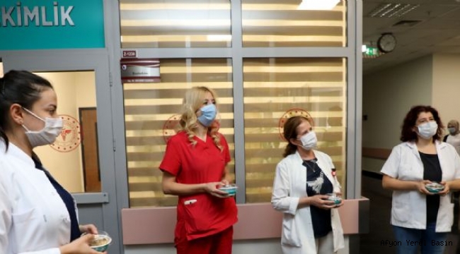 Afyonkarahisar Belediyesi Covid-19 salgını dolayısıyla özveriyle çalışan sağlık çalışanlara aşure ikram etti.Belediye Başkanı Mehmet Zeybek’in talimatlarıyla Belediye Sosyal Tesislerinde özenle hazırlanan aşureler, afyon devlet hastanesi ve Afyonkarahisar Sağlık Bilimleri Üniversitesi Tıp Fakültesi Hastanesini ikram edildi.