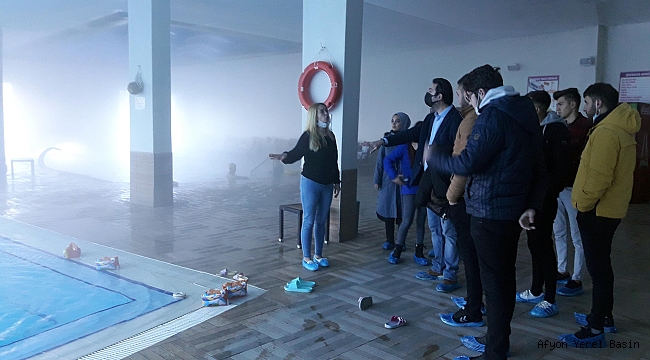 Afyon Kocatepe Üniversitesi (AKÜ) sandıklı meslek yüksekokulu (MYO), Sağlık Turizmi İşletmeciliği Programı öğrencileri, teknik bilgiler edinmek amacıyla Sandıklı Hüdai Kaplıcalarını ziyaret etti.