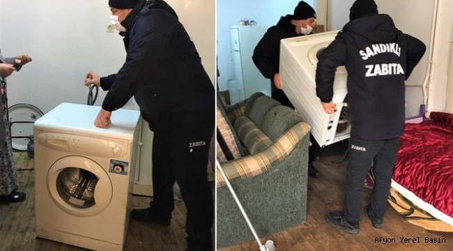 Sandıklı Belediyesi tarafından ihtiyaç sahibi vatandaşlarımızın eksikliklerini giderme noktasında 7/24 mesai gözetmeksiniz çalışan ekiplerimiz, gerek muhtarlarımızdan gerekse halkımızdan gerekli bilgileri alarak ailelere yardım etmeyi sürdürüyor.Evde sıcak yemek projesi ile 6 yıldır ihtiyaç sahibi vatandaşlarımıza her gün 3 çeşit sıcak yemek ve ekmek evlerine kadar bırakılarak yemek ihtiyaçları karşılanmış olurken, SANKART projesi ile kart verilen vatandaşlarımız market alış verişlerini istedikleri yerden alabilmektedir.Bu bağlamda Ece Mahallesinde yalnız yaşayan ve Sandıklı Belediyesinden günlük sıcak yemek alan bir vatandaşımıza Zabıta Müdürlüğümüzün katkılarıyla beyaz eşya ile ev araç, gereçleri temin edildi.Zabıta Müdürlüğümüze bağlı ekipler tarafından evine yerleştirilen eşyaları gören vatandaşımız duyduğu memnuniyeti ifade ederek, Belediye Başkanımız Mustafa Çöl başta olmak üzere emeği geçen personele teşekkür etti.