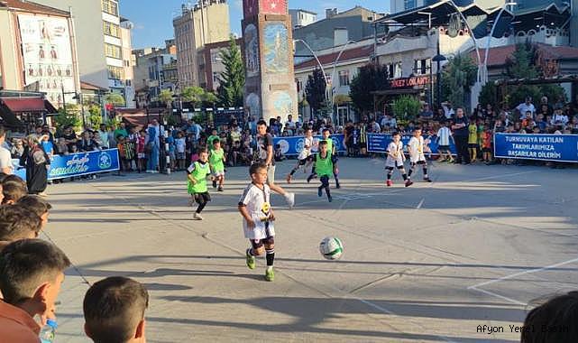 Sandıklı'nın 15 Temmuz Demokrasi Meydanı, heyecanlı bir atmosfere sahne oluyor. Geleneksel Sokak Futbol turnuvasına 6-13 yaş aralığında bulunan 400 genç katılım sağlıyor.
