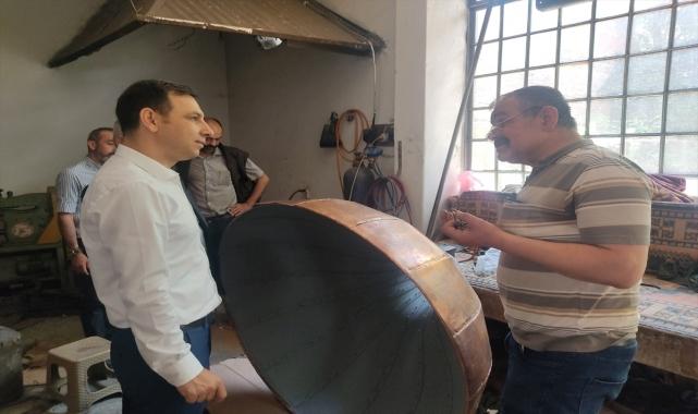 Ziyarettin ardından Sülün, bakır ustaları Mehmet ve Ahmet Üstün'e çalışmalarında başarılar diledi.