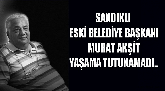 Korona Virüs tedavisi gören eski Belediye Başkanlığı yapmış olan Murat Akşit, Tedavi gördüğü Özel bir hastanede vefat ettiği bildirildi. 1993- 1999 Yıllarında DYP'den Belediye Başkanı olan, Sanjet'i Sandıklı'ya kazandıran, Oğlu esnaf, Kızı Avukat olarak 2 çocuk sahibi murat akşit 3 saat önce, Afyonkarahisar'da bulunan özel bir hastanede hayatını keybettiği bildirildi.