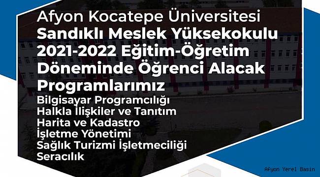 Sandıklı Meslek Yüksekokulu, 2021/2022 Eğitim ve Öğretim döneminde yeni öğrenci alacak olan bölümleri açıkladı.