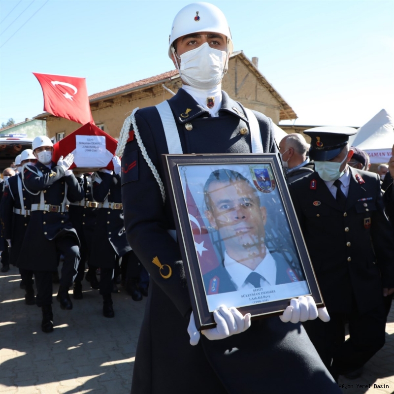 Suriye’den Afyonkarahisar’a şehit ateşi düştü. J. Asb. Kd. Bçvş. Süleyman Demirel, el yapımı patlayıcının etkisiz hale getirildiği sırada patlayıcının infilak etmesi sonucu şehit düşen J. Asb. Kd. Bçvş süleyman demirel dualar ve gözyaşları ile son yolculuğuna uğurlandı.Suriye’nin Elbab Şehir merkezi Halep Kavşağında saat 11.00 sıralarında el yapımı patlayıcının etkisiz hale getirildiği sırada, patlayıcının infilak etmesi sonucu, Dazkırı İlçesi Aşağıyenice Köyü nüfusuna kayıtlı J. Asb. Kd. Bçvş. Süleyman Demirel şehit düştü. Tekirdağ İl Jandarma Komutanlığında görevli olan şehit Süleyman Demirel Suriye’de patlayıcı imhasında görevlendirilmişti. 24 yıldır askerlik görevini yürüten şehit Süleyman Demirel 42 yaşındaydı. Hemşire Nuriye Demirel ile evli olan şehit Süleyman Demirel’in 17 yaşında Elif Ezgi ile 12 yaşında Rabia Rüya adında 2 kız çocuğu bulunuyor. Dün gece saatlerinde Denizli Çardak Havalimanına getirilen şehidimizin naaaşı buradan karayolu ile Dazkırı Devlet Hastanesi morguna kaldırıldı. Sabah saatlerinde şehidimizin naaşı askeri manga eşliğinde morgdan alınarak Aşağıyenice Köyü’nde bulunan baba evine getirildi. Burada helallik alınmasının ardından şehidimizin naaşı cenaze namazının kılınacağı alana götürüldü.Bakan Soylu Acılarını PaylaştıErken saatlerde ilçeye giden Vali Gökmen Çiçek, aziz şehidimizin kıymetli ailesini ziyaret etti. Vali Çiçek baba Mehmet Demirel ile şehidimizin ailesine taziyelerini iletti. İçişleri Bakanı Süleyman Soylu da şehidimizin ailesini telefonla arayarak acılarını paylaştı, baş sağlığı diledi. Bakan Soylu: “Ne yapsak sizlerin hakkını ödeyemeyiz” dedi. Şehit babası Mehmet Demirel’de Bakan Soylu’ya teşekkür ederek, “Sizin de başınız sağ olsun Bakanım” dedi.Şehit J. Asb. Kd. Bçvş. Süleyman Demirel için Cuma namazına müteakip cenaze namazı kılındı, ardından helallik alındı. Cenaze namazı sonrası Vali Gökmen Çiçek, İçişleri Bakan Yardımcısı Vali Mehmet Ersoy ve vatandaşlar tarafından omuzlara alınan şehidimizin naaşı defnedilmek üzere köy mezarlığına götürüldü.Kur’an-ı Kerim Tilaveti ve dualar eşliğinde defnedilen şehidimizin ailesine Vali Gökmen Çiçek ile İçişleri Bakanı Yardımcısı Vali Mehmet Ersoy tarafından Türk Bayrağı teslim edildi. Vali Gökmen Çiçek ve Bakan Yardımcısı Vali Ersoy, tören süresince şehidimizin ailesiyle yakından ilgilenerek, baş sağlığı ve sabır dileklerini iletti.Şehit J. Asb. Kd. Bçvş. Süleyman Demirel için düzenlenen cenaze törenine Vali Gökmen Çiçek, İçişleri Bakan Yardımcısı Vali Mehmet Ersoy, Milletvekilleri Ali Özkaya, Burcu Köksal, Mehmet Taytak, Jandarma Genel Komutan Yardımcısı Korgeneral Ali Çardakçı, Belediye Başkanı Mehmet Zeybek, Cumhuriyet Başsavcısı Mustafa Çelenk, askeri ve mülki erkan, diğer protokol üyeleri ile çok sayıda vatandaş katıldı.