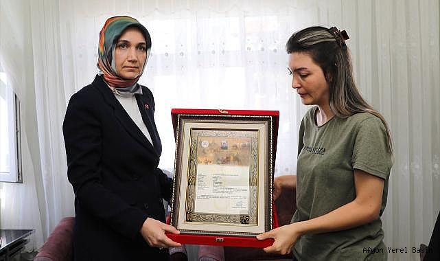Vali Kübra Güran Yiğitbaşı, Afyonkarahisar-Konya karayolunda meydana gelen trafik kazasında hayatını kaybeden Jandarma Astsubay Kıdemli Çavuş Mustafa Tatlı'nın ailesini ziyaret ederek, şehadet belgesini takdim etti.