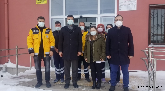 Korkmaz'ın bugünkü durağı Sinanpaşa Düzağaç Aile Sağlığı Merkezi (ASM) ve Düzağaç 112 Acil Sağlık Hizmetleri İstasyonu (ASHİ) oldu. Hem salgın sürecinde hem de kötü hava şartlarında verilen sağlık hizmetleri, hizmet sunumunda yaşanması muhtemel sorunlar ile ilgili bilgi alarak personel ile sohbet eden İl Sağlık Müdürü Korkmaz'a, Müdürlüğümüz Sağlık Hizmetleri Başkanı Uzm.Dr.Mehmet Pala ve Başkan Yardımcısı Dr. Hakan Güdücü eşlik etti.