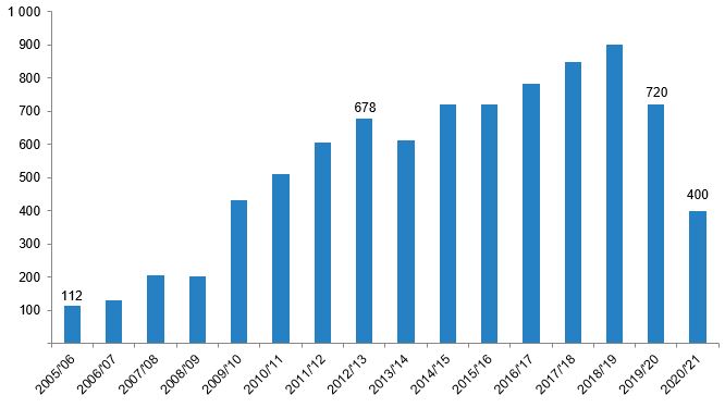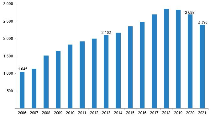 Gösterilen yerli ve yabancı film sayısı, 2006-2021