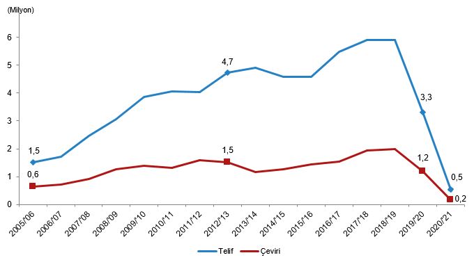 Tiyatro seyirci sayısı 2020/'21 sezonunda %84,1 azalarak 714 bin 864 oldu. Tiyatro salonlarında oynanan eser sayısı geçen sezona göre %73,3 azalarak 1 665 oldu. Tiyatro salonlarında oynanan telif (yerli) eser sayısı %74,4 azalırken, çeviri (yabancı) eser sayısı %66,6 azaldı. Tiyatroda telif eser seyirci sayısı geçen sezona göre %83,6 azalırken, çeviri eser seyirci sayısı %85,5 azaldı.