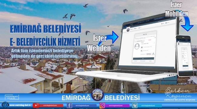 Emirdağ Belediyesi, Vatandaş Odaklı Çalışmalarıyla İlçe Sakinlerine Kolaylık Sağlamaya Devam Ediyor Sosyal belediyecilik anlayışıyla hareket eden emirdağ belediyesi vatandaşlara kolaylık sağlayan her türlü çalışmayı destekliyor. Emirdağlılar, https://e-belediye.emirdag.bel.tr/ sitesi üzerinden E- belediye uygulaması ile belediyeye olan her türlü borçlarını öğrenip, kredi kartı ile online olarak ödeme yapabiliyorlar. Bunun haricinde belediyede işlem gören evraklarını bina ve inşaat maliyetlerini, çevre ve temizlik vergilerini öğrenip bir tık ile kolayca işlemlerini gerçekleştirebiliyorlar. Vatandaşların istek ve düşüncelerine değer veren Emirdağ Belediyesi E- belediye üzerinden vatandaşların şikayet ve isteklerini alarak gereken her türlü çalışmayı en kısa sürede gerçekleştiriyor.E-hizmetler gündelik yaşamın kolaylaştırılması ve kamu yönetiminde etkinliğin sağlanması açılarından oldukça önemli olduğunu dile getiren Emirdağ Belediye Başkanı Serkan Koyuncu: "Gelişen ülke şartlarında vatandaşlarımıza daha hızlı ve güvenilir bir hizmet vermek için çalışmalarımız devam ediyor. Vatandaşlarımız E-belediye ile ulaşmak istedikleri bilgiye ve resmi evraka daha az bürokratik işlemle, daha hızlı bir şekilde erişebilmekteler. E-Belediye sistemi temel belediye hizmetlerini kapsıyor ve hizmet süreçlerini basitleştiriyor. Vatandaşların belediye hizmetlerinden daha hızlı, kolay, etkin ve kaliteli şekilde yararlanmasına destek sağlıyor” dedi.