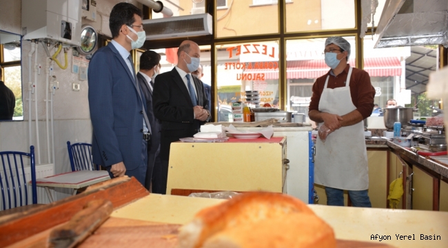 Şuhut’ta İçişleri Bakanlığının ek genelgesi kapsamında kafe, restoran ve eğlence yerlerine yönelik Şuhut Kaymakamı Erkan Kaçmaz ve Şuhut Belediye Başkanı Recep Bozkurt tarafından ilçe merkezinde denetimler gerçekleştirildi.Yapılan denetime Şuhut Devlet Hastanesi Başhekimi Op.Dr.Erkan Kaçmaz,Şuhut Jandarma Komutanı Teğmen Hasan Yassıkaya,İlçe Emniyet Müdür V.Onur Bayram ve daire amirleri katıldı.Başkan Bozkurt denetimlerin ardından gazetecilere yaptığı açıklamada, yeni genelge doğrultusunda, ilde kontrollerin bir hafta boyunca sıklıkla süreceğini söyledi.Başkan Bozkurt konuşmasında ”Bugünkü denetimimiz belirli mekanlara yönelik gerçekleşti. Özellikle gıda sektörüne yönelik yapılan denetimlerde vatandaşın ve esnafımızın kurallara uyduğunu gözlemledik.Kurallara uyan herkese teşekkür ederiz”dedi.İş yeri sahiplerine ve müşterilere tedbirli davranmaları konusunda uyarıda bulunan ekipler, salgından korunmak için maske, mesafe ve hijyen konusunda duyarlı olunmasını istedi.