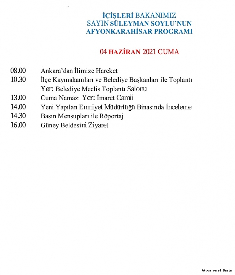 Süleyman Soylu'nun programı aşağıdaki gibidir.
