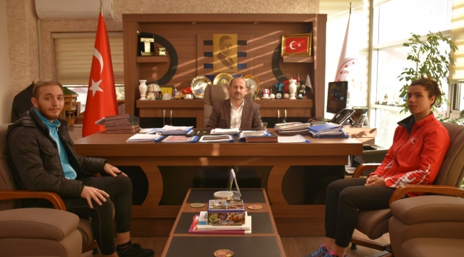 Şampiyon sporcu Kübra Kocakuş ile antrenörü Berkan Öner’i makamında kabul eden Gençlik ve Spor İl Müdürümüz Feyzullah DERECİ; Kübra’yı göstermiş olduğu üstün başarıdan dolayı tebrik ederken, antrenör Berkan Öner’e de emekleri için teşekkür etti.