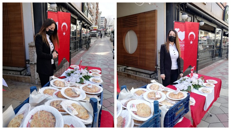 Parti binası önünde gerçekleşen etkinlikte 8 Mart Dünya Kadınlar Günü’ne dikkat çekmek hemde helikopter kazasında şehit olan Mehmetçiklerimizi anmak adına pide ve helva dağıtımı gerçekleştirildi.