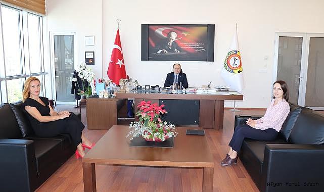 Türk Ekonomi Bankası Afyon Şube Müdürü Şerife Aydoğuş ile KOBİ Portföy Yöneticisi Burçe Demirdöğen, Afyonkarahisar Ticaret ve Sanayi Odası Yönetim Kurulu Başkanı Hüsnü Serteser’i ziyaret etti. Aydoğuş ile Demirdöğen, üst üste 4’üncü kez ATSO Yönetim Kurulu Başkanlığı’na seçilen Serteser’i tebrik etti.Serteser, ziyaret dolayısıyla Aydoğuş ve Demirdöğen’e teşekkür etti.