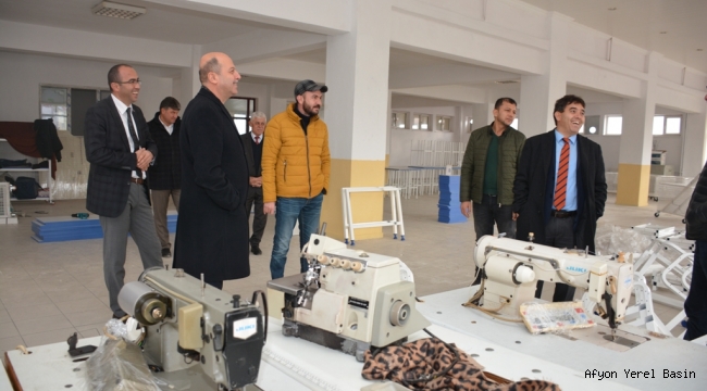 Şuhut Belediye Başkanı Recep Bozkurt,mülkiyeti belediyeye ait olan alanda faaliyete geçecek olan tekstil atölyesindeki çalışmaları inceledi.